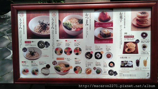 ▼菜單,主要有烏龍冷麵、烏龍湯麵、私房碟菜、手作小點和茶飲