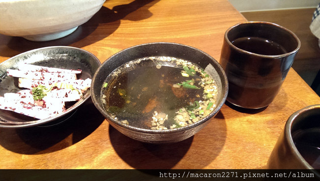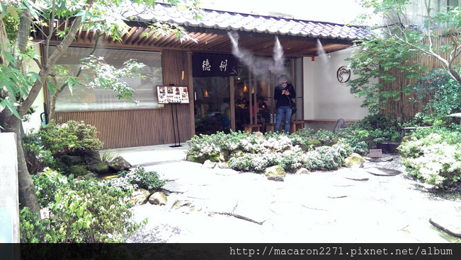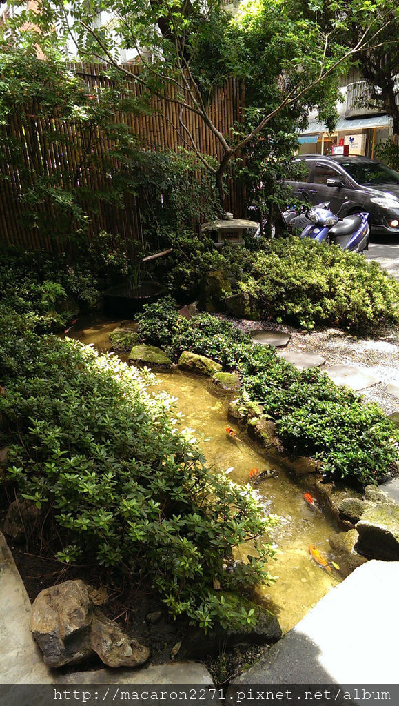 ▼戶外是日式造景的空間,小水池橫跨入口處,裡面的小魚悠閒的游著,她們殊不知今天的天氣熱到爆,才在外面站了一下我就飆汗了。