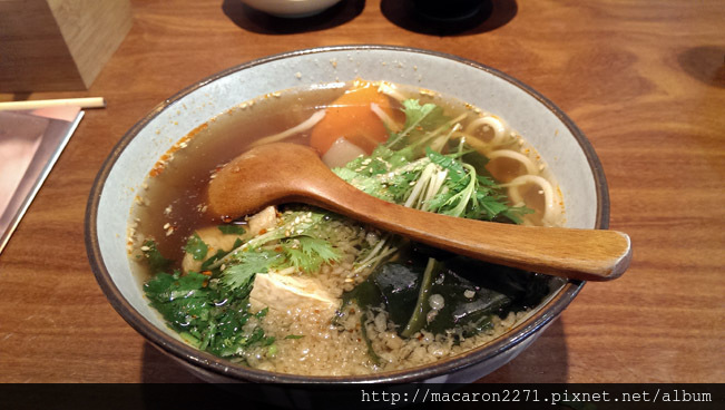 再過五天我就不用吃素了,這一陣子吃素身體變得很好,也吃了一些不錯的素食餐廳,上星期日我和朋友到位於東區的穗科手打烏龍麵(忠孝店)用餐,還好我們提早在12點前到,入座之後,後面陸續來了好多人在排隊,我們蠻幸運的。看了網站才知道原來台中有家創始店,在精誠路上,是由楊師傅與日本一位大師--糠信和広師傅傳習製麵技藝多年,學成歸國分享手打烏龍麵所傳達的感動與精神。