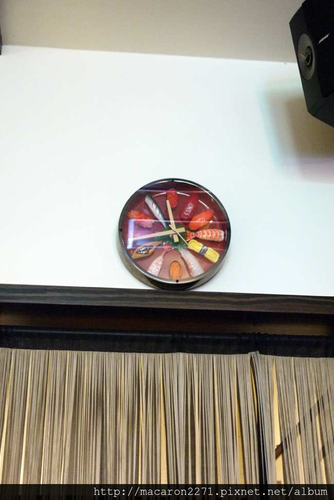 ▼我們坐在吧檯最裡面,旁邊牆上時鐘也是握壽司造型~好可愛