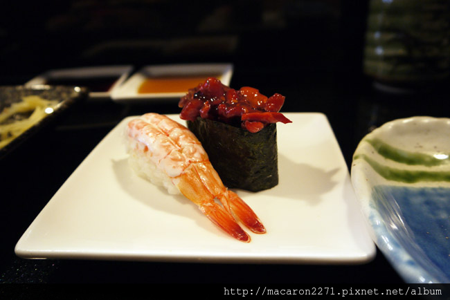 ▼[握壽司]蝦子握壽司、[軍艦壽司]味付干貝壽司