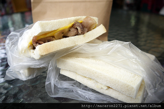左手邊是雪花肉蛋吐司,右手邊是沙拉吐司
