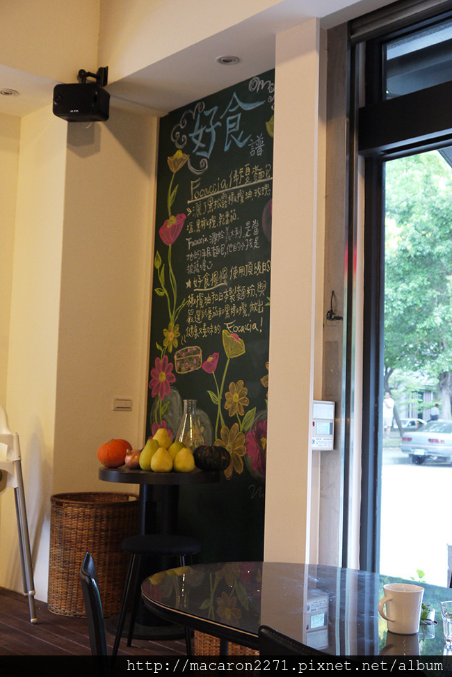 ▼牆壁上寫著好食譜~佛卡夏麵包嚴選的食材