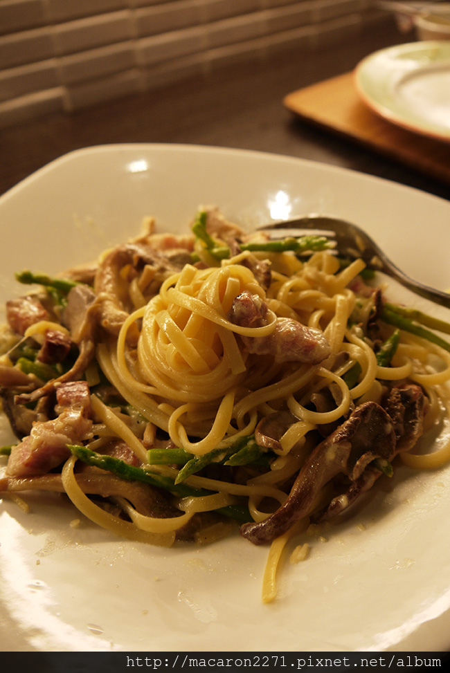 ▼野菇培根奶油麵