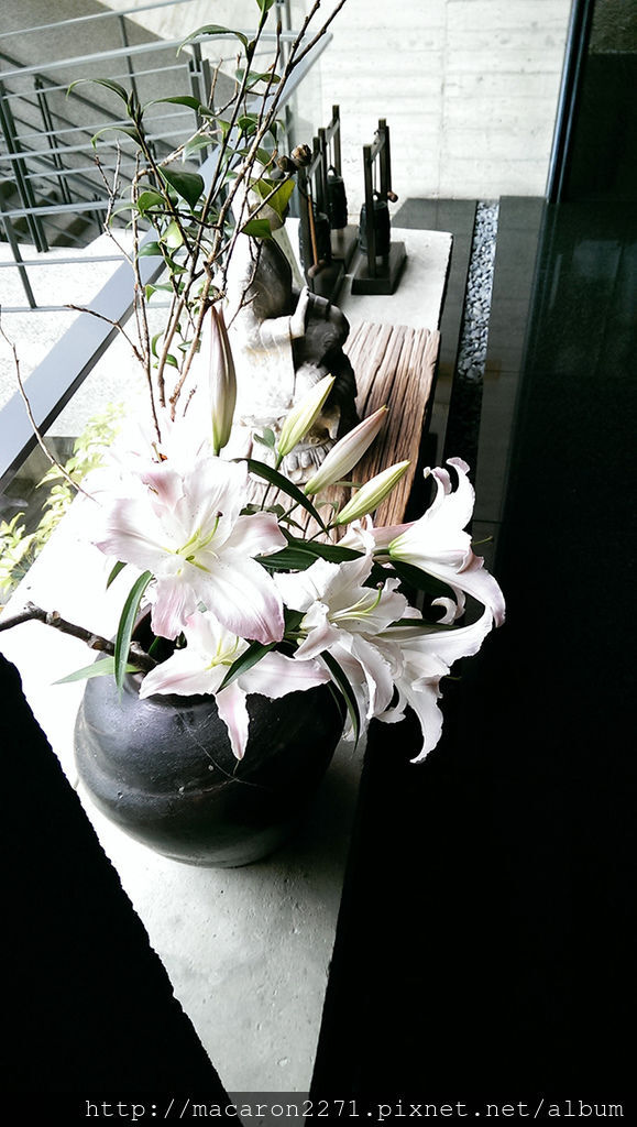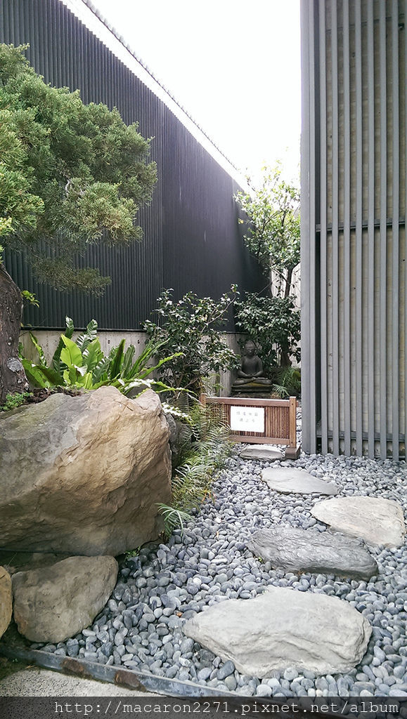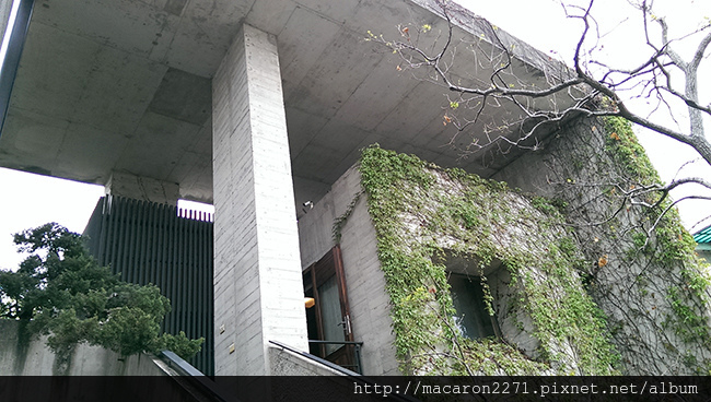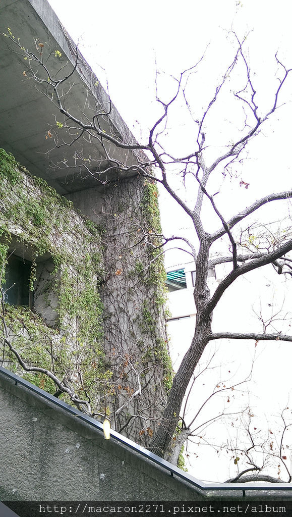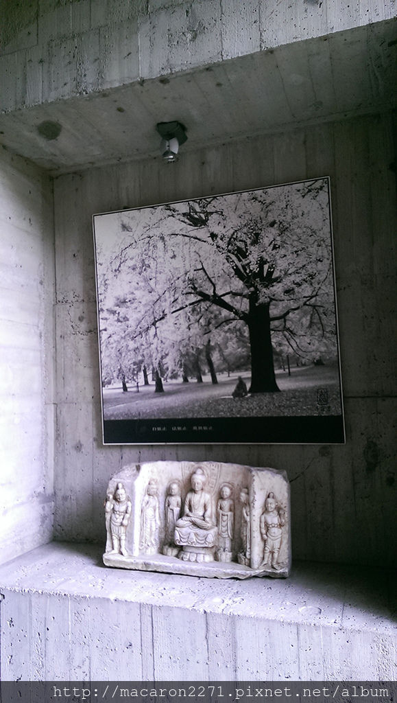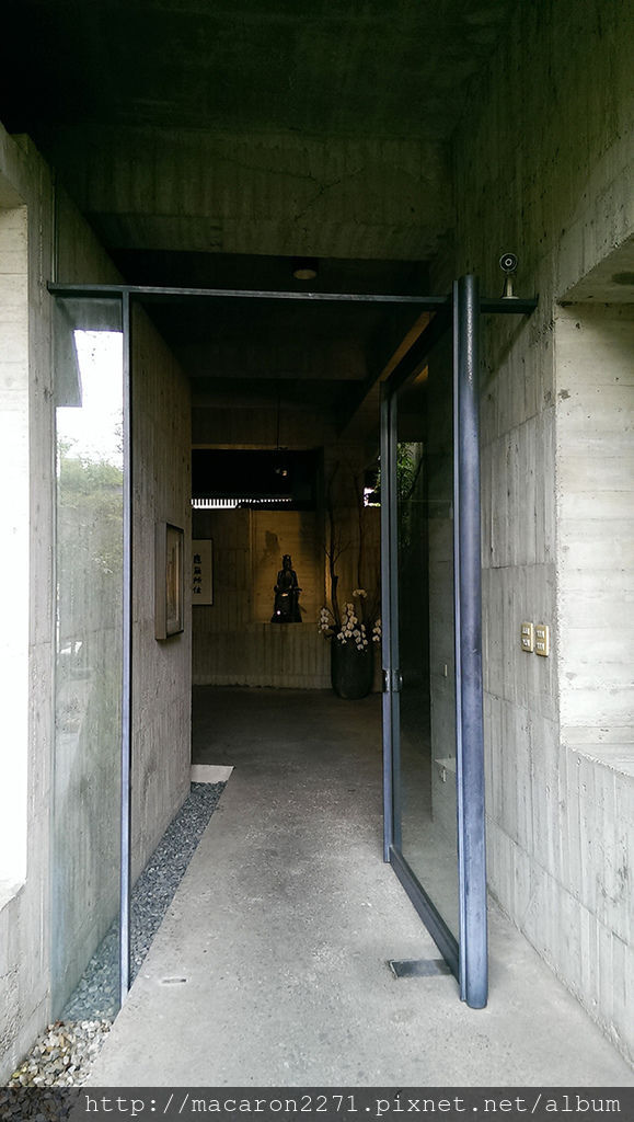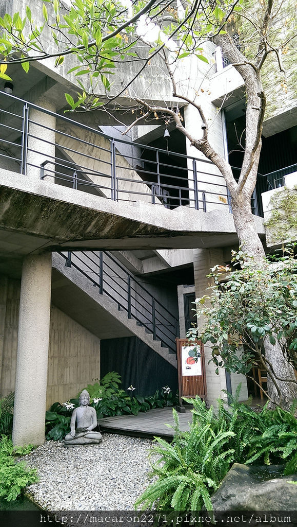 大自然的變化很驚人,三個禮拜前到大里菩薩寺,建築物外的爬牆虎和一樓的烏臼還一片光禿禿,第二次去的時候綠意盎然實在不可思議。有別於一般寺廟宮殿造型的外觀,由半畝塘團隊打造,以簡潔線條的清水模建築佇立在都市空間中,雖然緊鄰馬路邊,但走進寺內,在折返樓梯間人從室內到戶外,再從戶外走進室內,所營造的氛圍讓人心靜下來,遠離都市緊湊生活的壓迫感,細細感受空間與環境的變化。