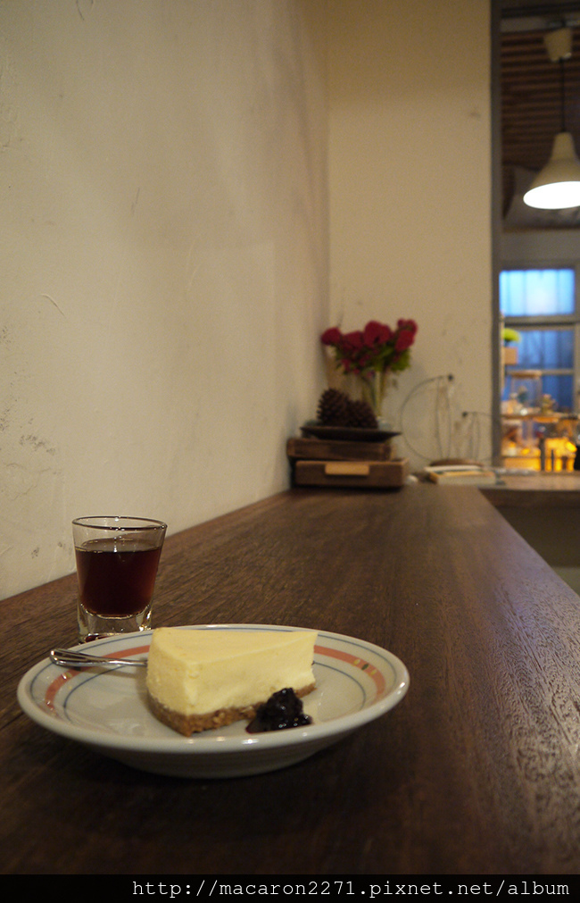 坐在吧檯長桌,風從門口吹進來吃著乳酪蛋糕很舒服