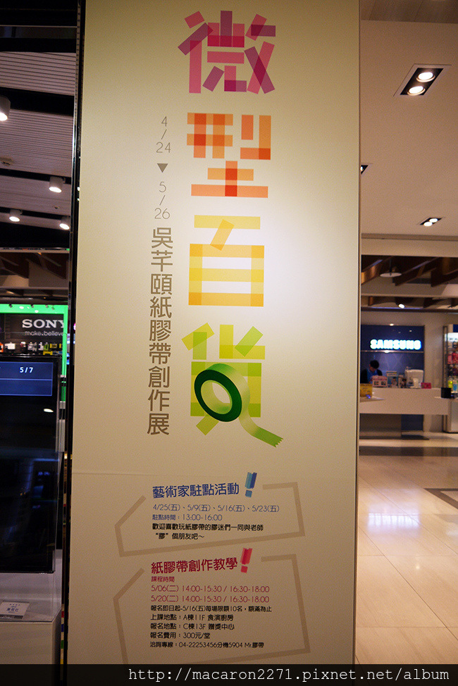 之前去誠品上過吳芊頤的紙膠微型書冊貼畫體驗課,這次知道她展出許多紙膠帶貼商品、書籍、生活用品的作品,趕在展覽快結束前去朝拜一下,沒報到紙膠帶創作教學課程實在是捶心肝阿~><~,有興趣的朋友可以趁最後一個禮拜去中友百貨看看,還可以順便繞到誠品書局看看小南風的創作展,展出一家人到日本京都旅行所拍下的影像紀錄,享受沐浴在藝文氛圍的一天。