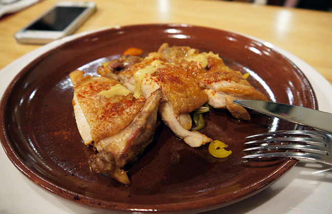 表皮很薄很酥脆,肉很容易用刀子切開且非常鮮嫩,沾上旁邊的巴薩米克醋很搭