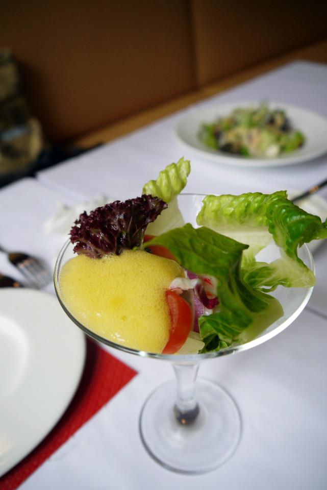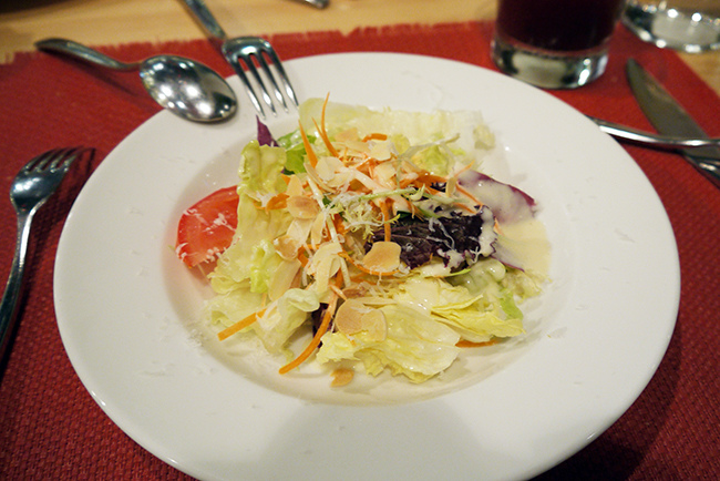 杏仁蘿蔓沙拉,烤過的杏仁片搭配新鮮蔬菜,淋上法式醬