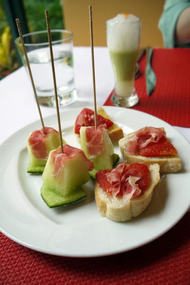 2.日本哈密瓜搭西班牙火腿/麵包托自製風乾番茄搭西班牙火腿